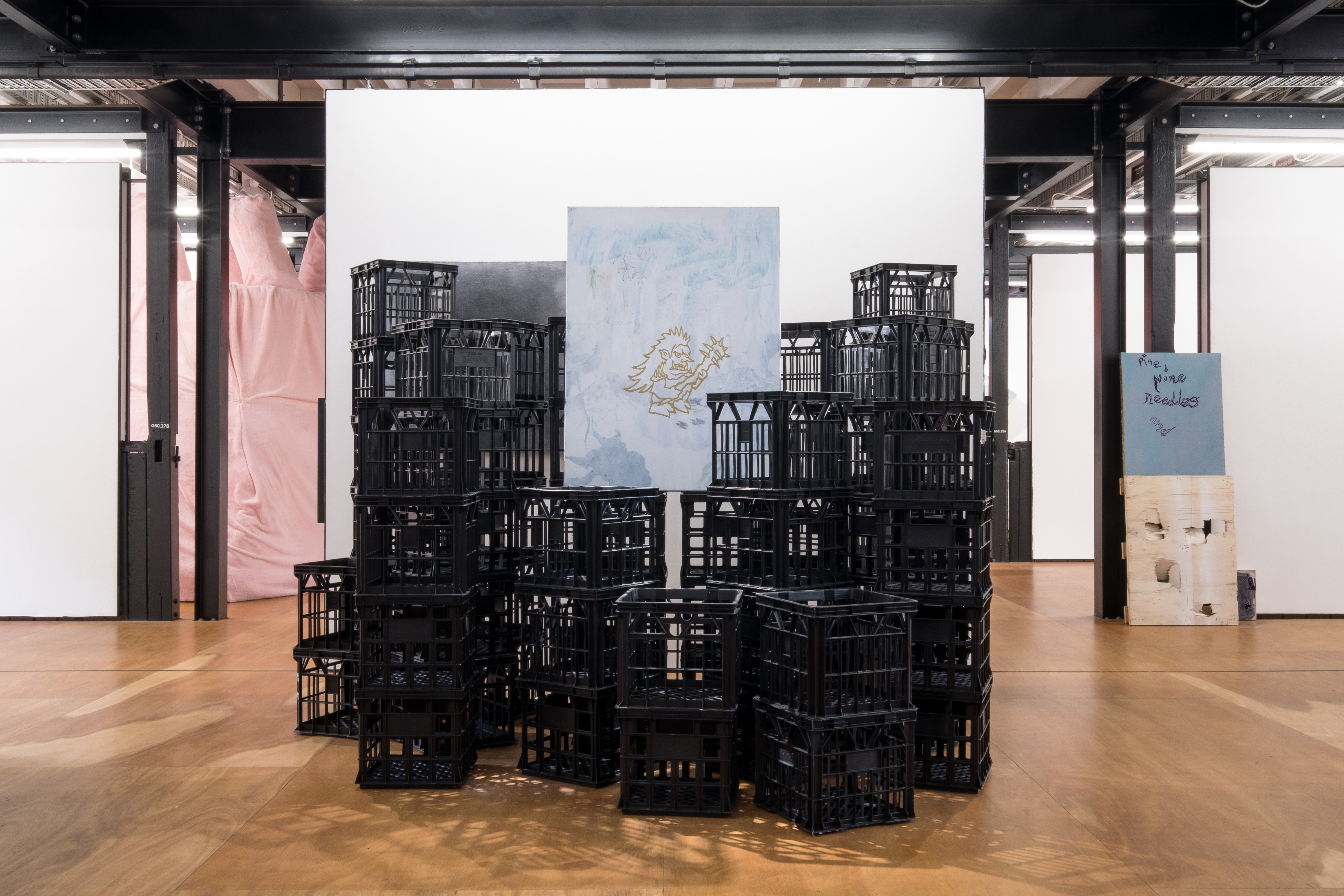 paintings, pallets, crates